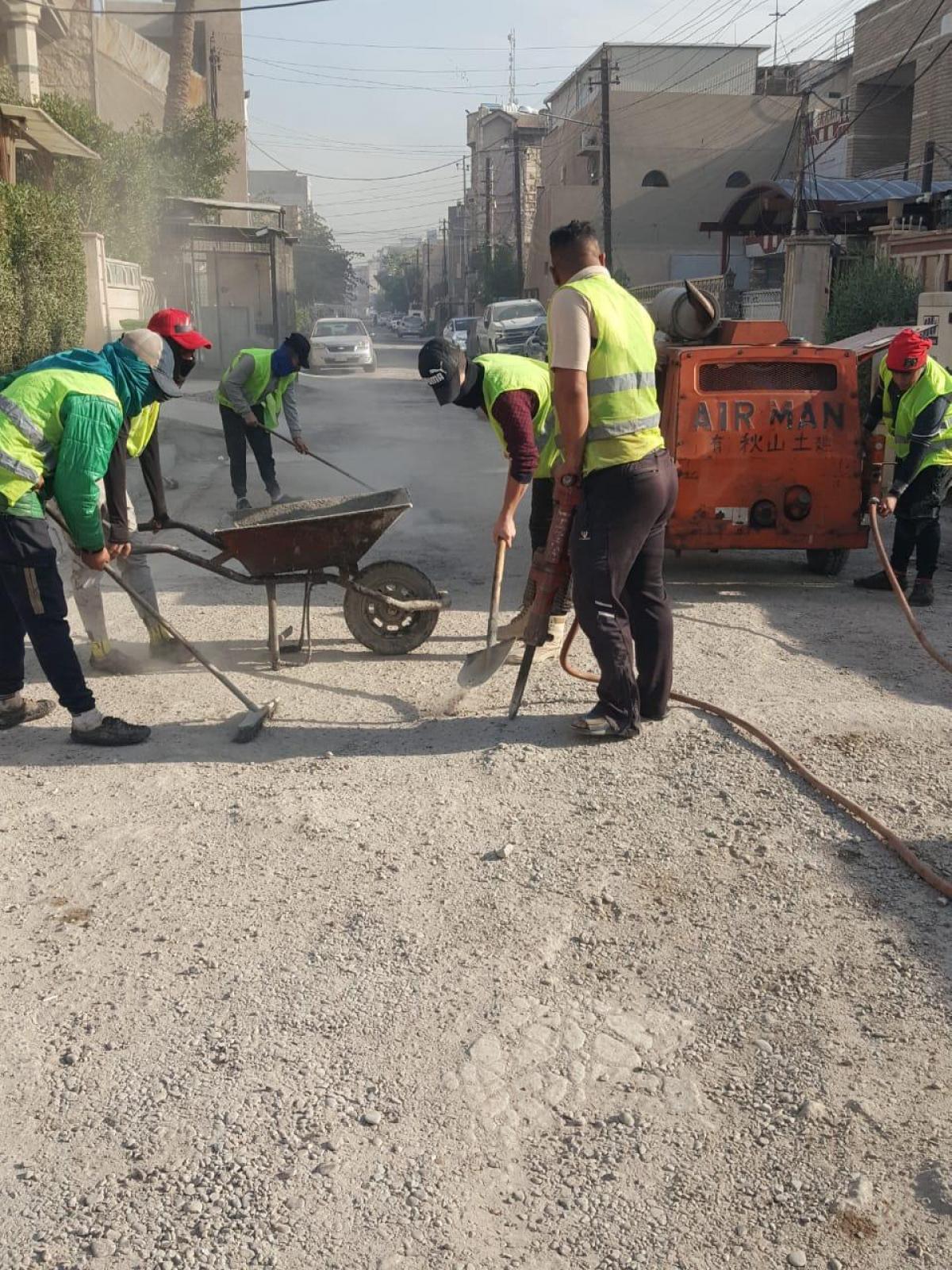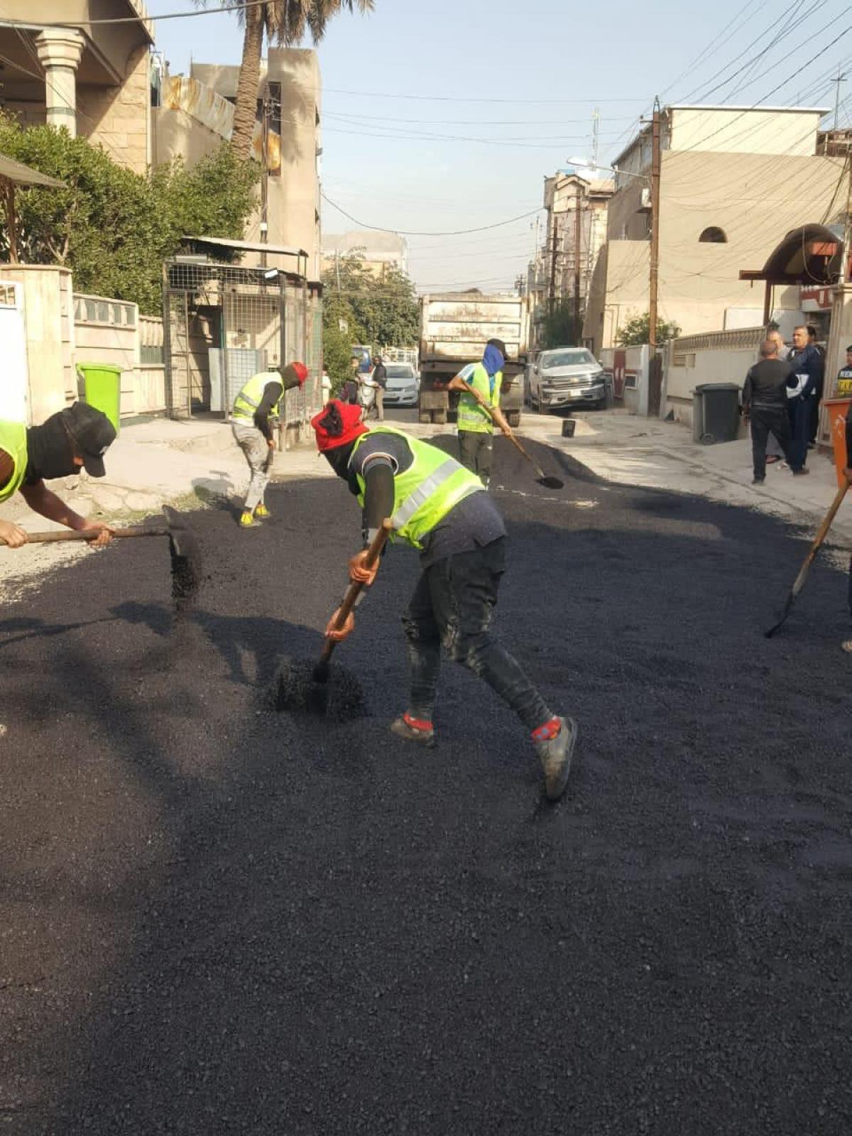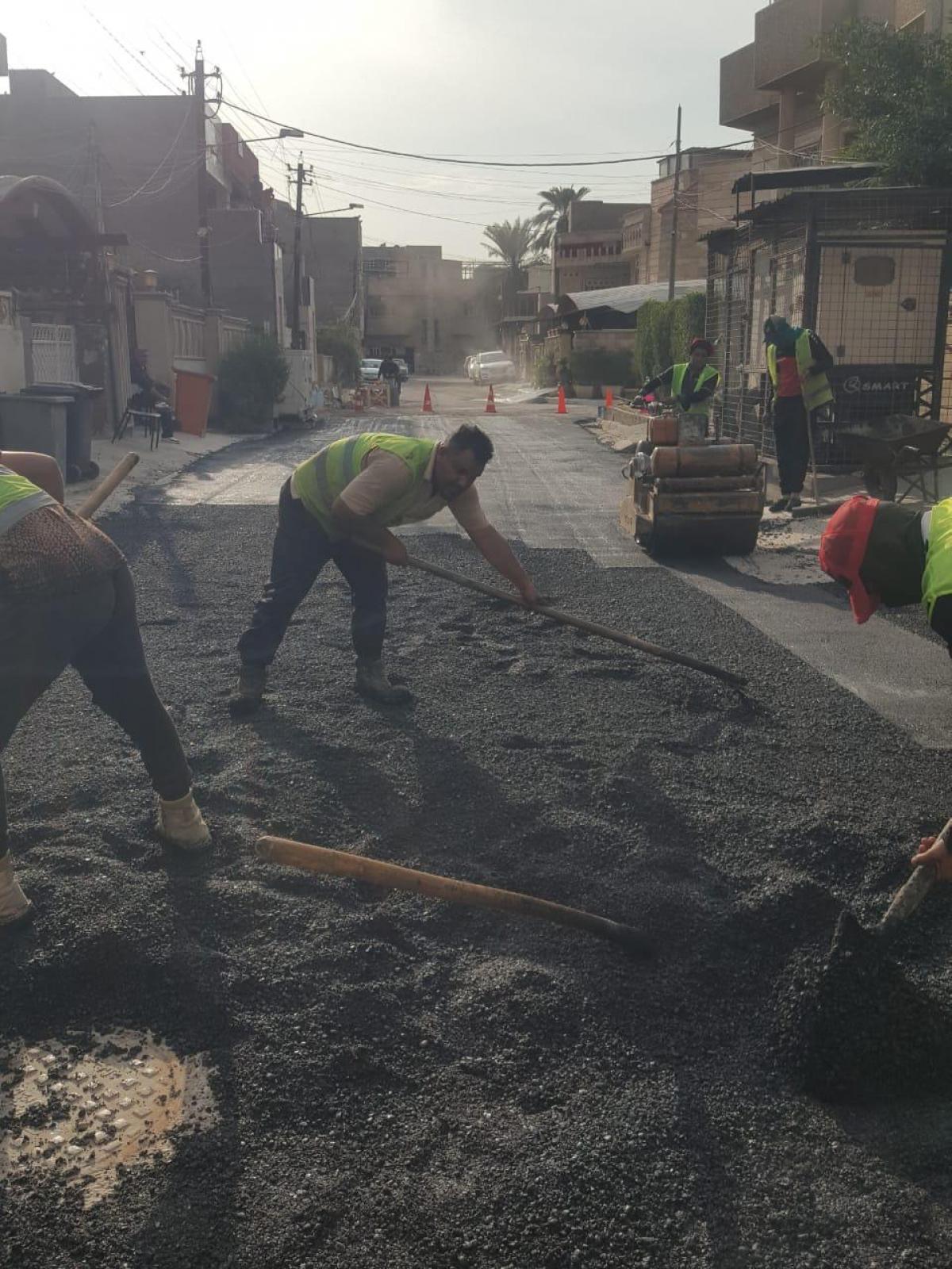 رصدت المورد نيوز، جهود امانة بغداد في قيامها لبعض الخدمات في منطقة الكرادة، ومنها تبليط الشوارع.