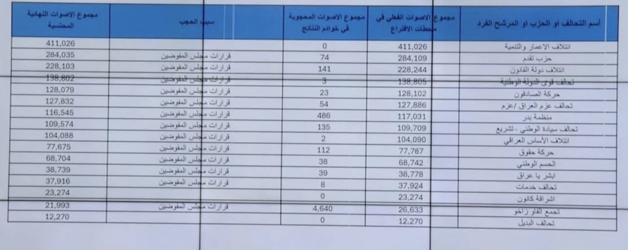أعلنت المفوضية العليا المستقلة، نتائج الانتخابات النيابية في العاصمة بغداد.