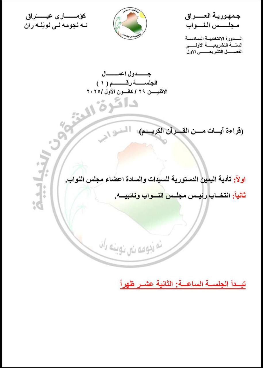 جدول أعمال جلسة البرلمان الأولى بعد غد الإثنين وتتضمن انتخاب رئيس مجلس النو